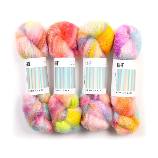 Kidsilk Lace fra Hedgehog Fibres er et superlet garn bestående af 70% super kid mohair og 30% silke og er et smukt håndfarvet garn fra Irland.