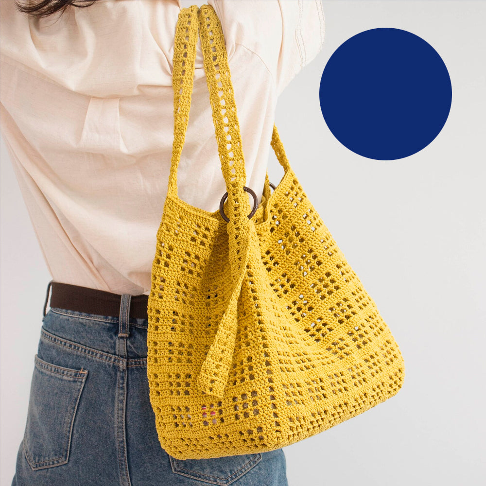 Kit med opskrift og garn til Olio Summer Big Bag i kongeblå.