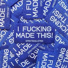 Tekstillabel fra Spektakelstrik med teksten "I FUCKING MADE THIS".