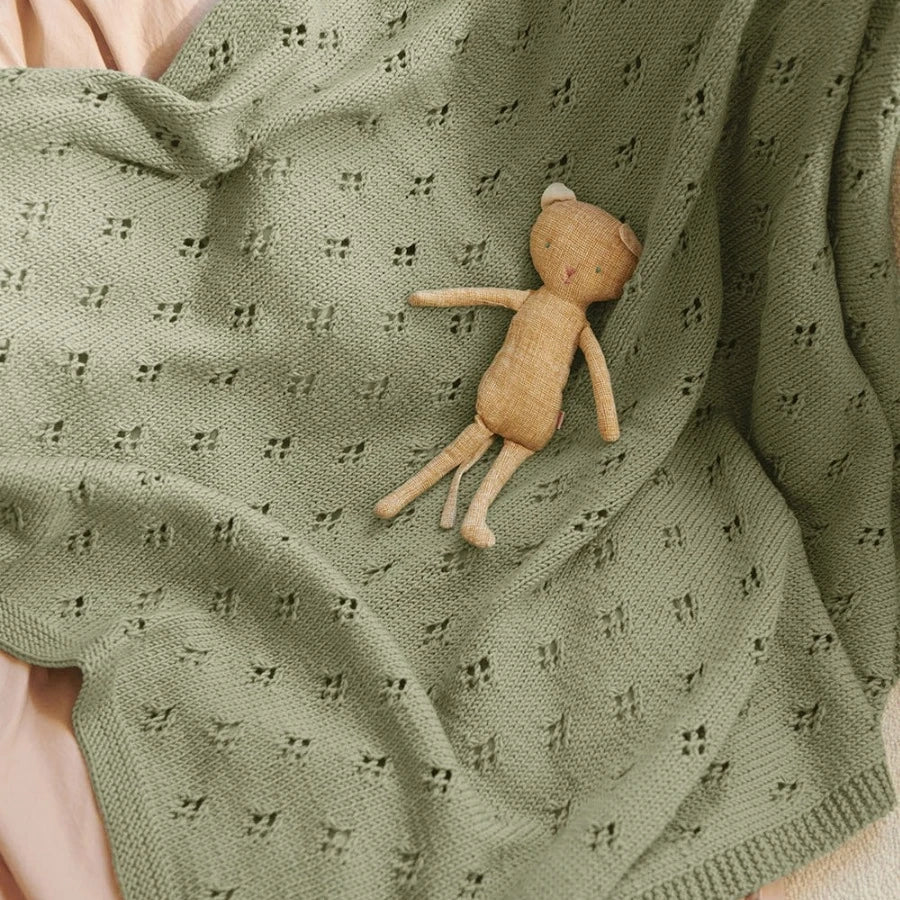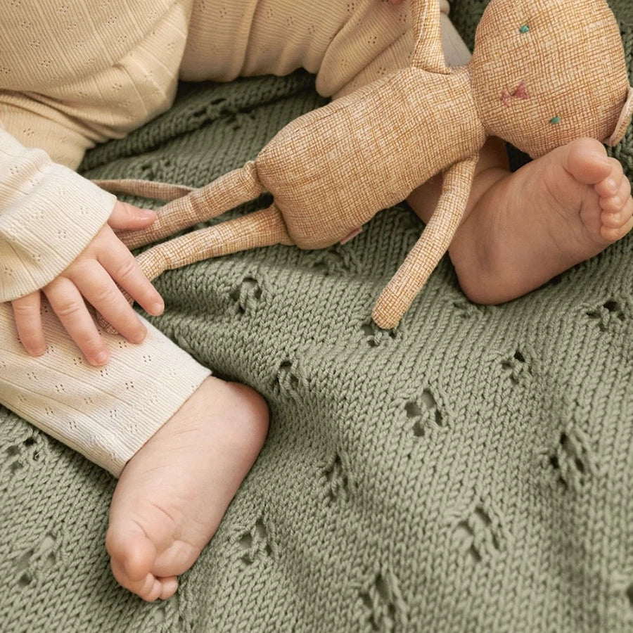Det fine Køver Tæppe strikkes frem og tilbage i et simpelt hulmønster beskrevet vha. diagram. Tæppet strikkes i Merinoull fra Sandnes Garn.