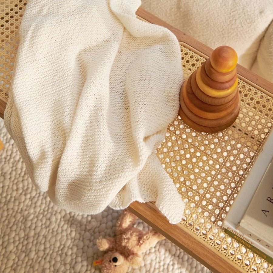 Det enkle Rilletæppe strikkes frem og tilbage i retriller på diagonalen. Det strikkes fra det ene hjørne med udtagninger og halvvejs skiftes der til indtagninger.