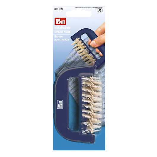 Mohairbørsten fra Prym bruges til at kradse uld, mohair og angora op, så det bliver meget loddent og lidt mere luftigt. Selve børsten er meget stiv og børster fibrene op. Anbefales derfor ikke til "blow-garn" (f.eks. Snefnug og Kos).